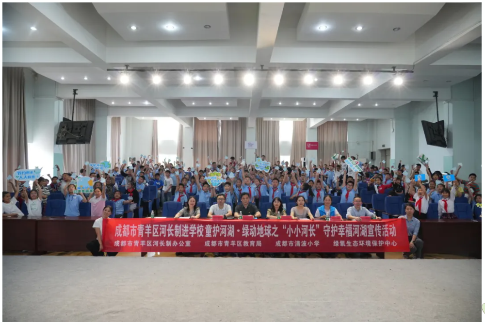 2025年4月22日,在第56个“世界地球日”到来之际,成都市青羊区河长制办公室、成都市青羊区教育局、成都市清波小学校、绿氧生态环境保护中心多方联合共同开展了“成都市青羊区河长制进学校丨童护河湖·绿动地球之“小小河长”守护幸福河湖”主题宣传活动。此次活动,共计约300余名师生参与,现场通过知识科普、情景体验等形式,将“守护幸福河湖”的理念深入“小小河长”心中。