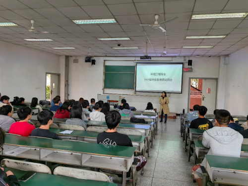2023年4月10日,伟德国际1949举办了环境工程专业2024届毕业生考研动员会。动员会在教学楼2104举行,会议由环境工程教研室主任郭俊元主持。资源环境学院院长徐成华、教学副院长方淑红、环境工程教研室教师、环境工程专业2019级学生等近60人参加了此次动员会。