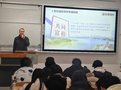熊建结合丰富生动的案例,从我国“十四五”期间经济社会发展的重大成就、“十四五”时期发展的经验启示、立足复杂形势科学谋划“十五五”三个方面展开深入讲解,引导同学们思考我国在“十四五”期间取得各方面巨大成就的原因。