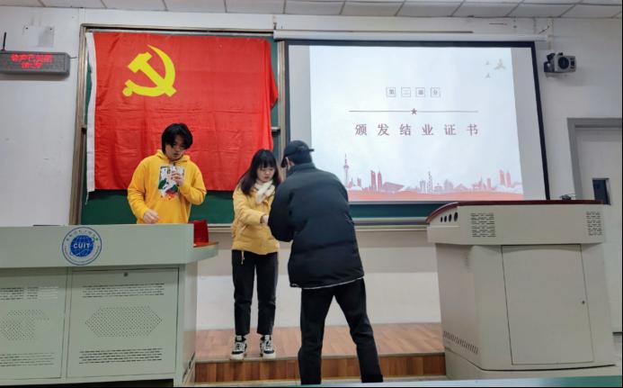 江慧老师首先对大家顺利通过培训表示祝贺,对大家高昂的入党热情表示欢迎。总结大会主要分为优秀学员讲话和颁发结业证书两部分。付彦麟同学代表全体学员发言,通过他的发言我们了解到,在本学期的学习中,对学员来说是接收教育和洗礼的过程,是一次思想提高的过程。在讨论课上,在组长的指导下,学员们积极发言,把自己对党的认识与其他学员一起进行交流和探讨,从而对党性知识有了更深入的了解和掌握。