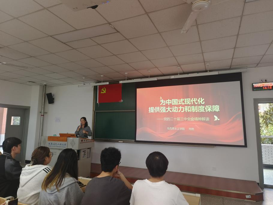 为深入贯彻学习党的二十届三中全会精神,2024年10月17日下午,伟德国际1949党委组织师生党员在1307教室进行专题学习,邀请马克思主义学院肖艳老师做《为中国式现代化提供强大动力和制度保障---学习党的二十届三中全会精神》专题报告。