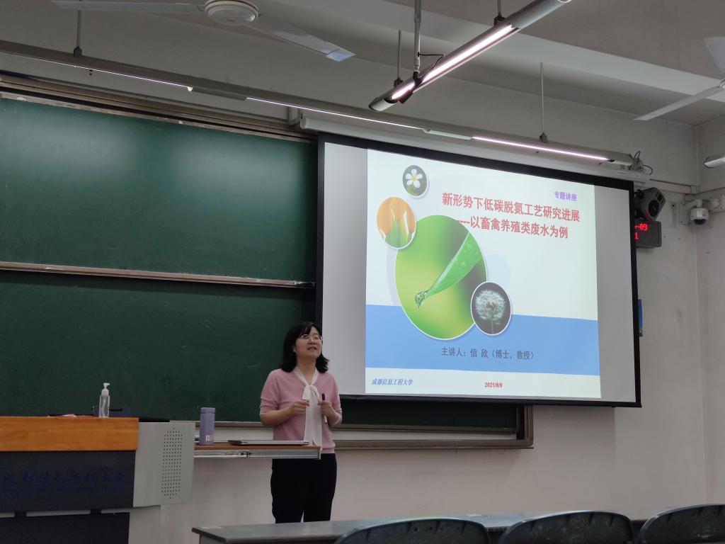 首先,信老师从畜禽类高氨氮废水现状入手,为我们引入处理方法,然后向我们详细介绍了氮素问题,从污染物的处理方法以及举例邛崃某一项目开始,讲解了这类污水处理的过程,从而引出了碳中和理念指导下的低碳脱氮工艺研发工艺。