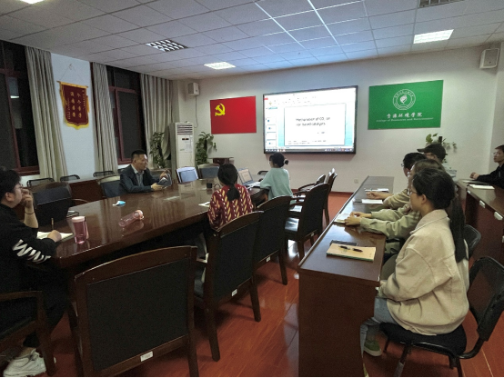 唐静怡同学分享了一篇来自AppliedCatalysisB的文章“Methanation of CO2 on iron based catalysts”,并为大家详细介绍了文章中所用到的较前沿的表征技术。随后,徐成华老师对其进行了点评,就文章中的难点、表征原理及学院中的实验仪器展开了一系列的科普,使同学们受益匪浅。